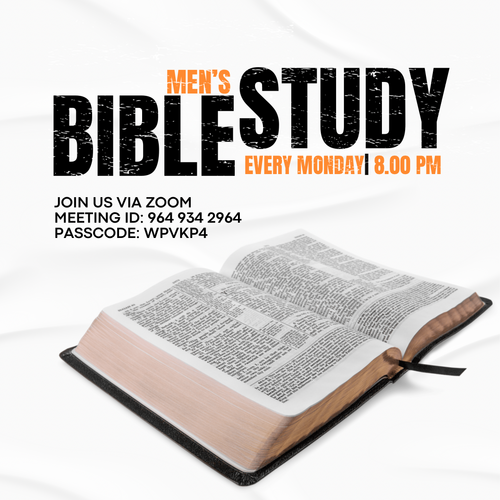 Men of all ages are invited to join us every Monday at 8:00 PM on Zoom for a time of fellowship, biblical teaching, and meaningful discussion as we grow together in faith.