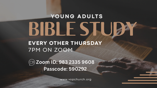 Young adults are invited to connect and grow in Christ every other Thursday at 7:00 PM on Zoom. Come ready for engaging conversation, encouragement, and spiritual growth.