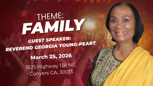 We are honored to share that our First Lady, Reverend Georgia Young- Peart will be a guest speaker at an upcoming event in Conyers, Georgia, centered on the theme of Family. This powerful gathering will focus on strengthening families through the Word of God, encouragement, and practical biblical teaching.