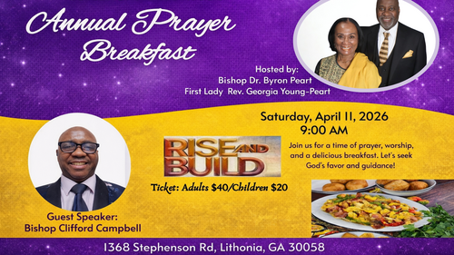 Join us for our Annual Prayer Breakfast as we gather in unity for food, fellowship, and a powerful time of prayer to strengthen our church and community.